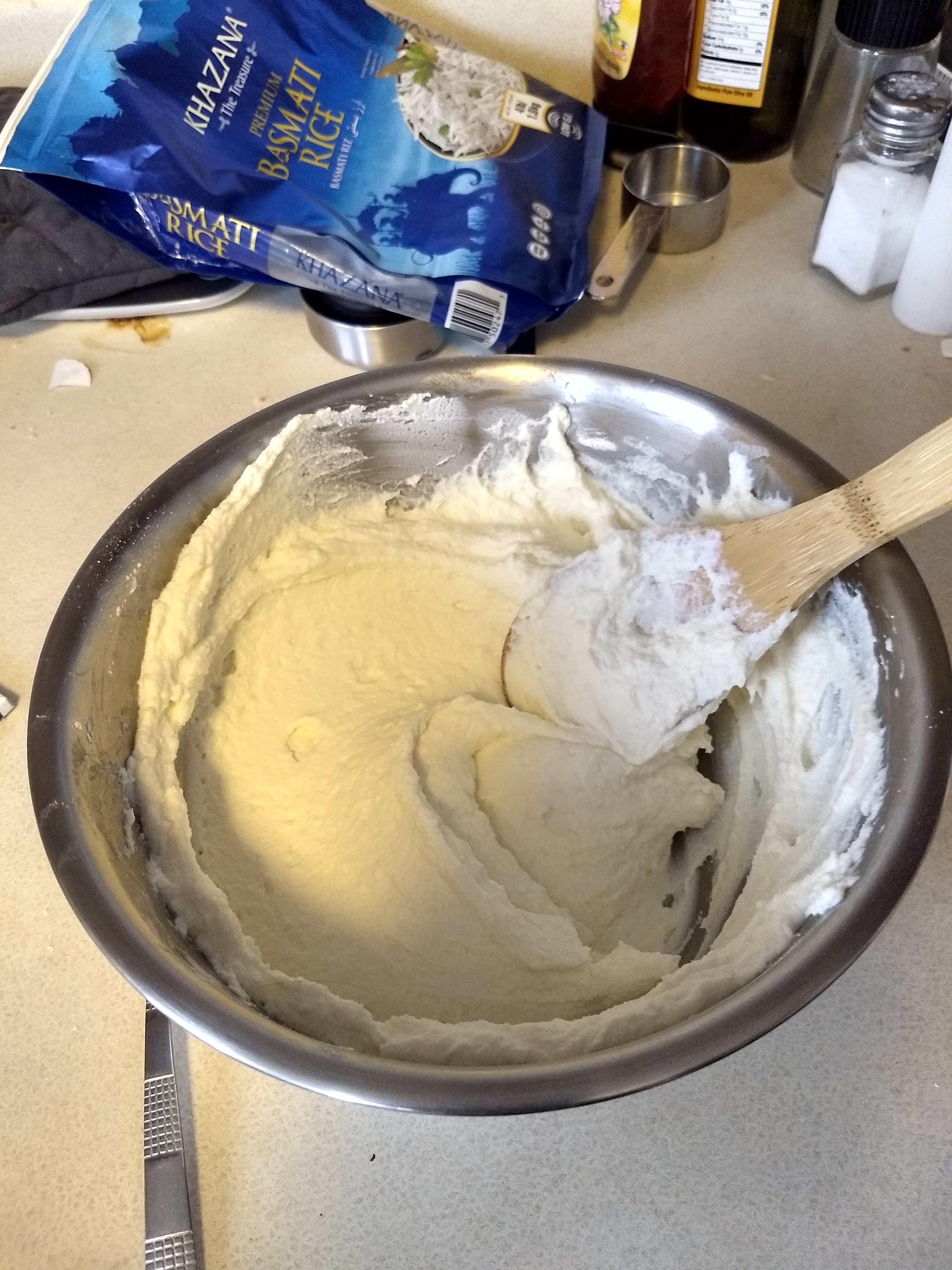 The internet warned me that the ricotta should be drained as much as possible. After 13 hours of suspension in a fine-mesh strainer (refrigerated, of course) and some manual compression, about a tablespoon of water came out of my ricotta. Perhaps the ricotta’s wetness varies by brand.